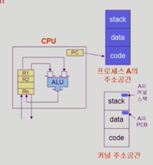 프로세스가 CPU를 뺏길 때는 레지스터에 저장되어 있던 값, pc값, memory map 을 해당 프로세스의 PCB에 (커널 주소공간의 data에 있는)